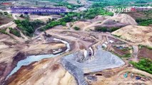 Presiden Joko Widodo meninjau progres pekerjaan fisik ruas Tol Bawen-Salatiga di wilayah Desa Polosiri, Bawen, Jawa Tengah.