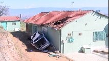 ESKİŞEHİR - Eskişehir'de gece saatlerinde sürücüsü tarafından kontrolü kaybedilen bir otomobil evin çatısına uçtu.