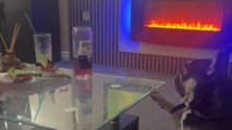 An amusing video has emerged of a man confronting his dog after he spilled his protein powder all over the carpet.