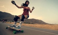 Two Girls Skate Down Expertly on Spanish Mountain Roads