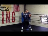 US Olympian Joseph Diaz Jr. prepares for his 7th pro bout as he hits the mitts with his trainer.