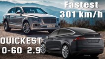 The fastest SUV in the world squares off with the quickest SUV in the world. The 600hp Germano-British Bentley Bentayga can reach speeds of 187 mph, making it the fastest SUV of all time. But the Tesla Model X P90D Ludicrous can rip off a 3.2-second 0-to-60. Which is faster through the quarter-mile? We drag race the two to find out. Then we pit them against a pair of Alfa Romeo 4C Spiders. Why? You’ll need to watch to find out. But trust us, it’s worth your time. Are both of these SUVs worth the money? That depends on your definition of luxury— it’s Ye Olde Tyme English drawing-room posh versus High-Tech Silicon Valley rolling computer. Wood and leather versus EV silence and AutoPilot. Normal doors versus Falcon doors. MOTOR TREND Senior Features Editors Jason Cammisa and Jonny Lieberman take them on an adventure to find out. Which do they prefer? There’s only one way to find out: by watching this episode of Head 2 Head, presented by Tire Rack.