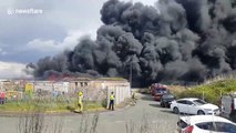 Footage of a huge fire at a synthetic turf factory in Maryport, Cumbria on Tuesday afternoon.
