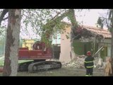 http://www.pupia.tv - Pieve Torina (Macerata) - Terremoto, demolizione parziale di un edificio (26.04.17)