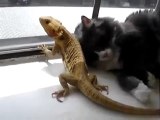 Amitié entre un chat et un gros lézard