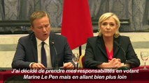 La candidate du Front national à l'élection présidentielle Marine Le Pen a annoncé samedi qu'en cas d'élection, elle nommerait Premier ministre Nicolas Dupont-Aignan, lors d'une conférence de presse commune avec le président de Debout la France qui l'a ralliée.