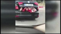 Seyir halindeki otomobilin bagaj kısmında yolculuk yapması AA muhabiri tarafından görüntülendi. Haber