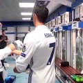A receção de Cristiano Ronaldo no balneário depois do hat-trick ao Bayer