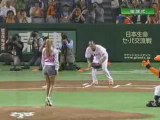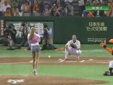 La cantante Mariah Carey lancia la palla di apertura al Tokyo Dome, nella partita di baseball tra Yomiuri Giants e Rakuten Eagles