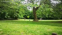 Duitse Herder springt van 2e verdieping en valt op een 21-jarige vrouw: de beelden zijn schokkend (video)
