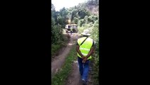 La roche qui menaçait de s'effondrer sur l'autoroute a47, entre St-Etienne et Lyon, a été détruite aujourd'hui par un tir de mine à 13h40.