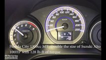 (0 - 100) Alto Turbo RS (660cc) vs Honda City 1.3 MT_AT