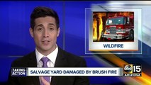 The fire started as a brush fire but later spread to a nearby junk yard. No word as to how much was damaged in the blaze.