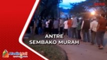 Tidak sabar mengantre, warga Makasar, Sulawesi Selatan saling desak-desakan mengambil paket sembako murah. Paket sembako dijual seharga Rp 50.000. Pihak kemaamanan terpaksa mengamankan antrean para pengambilan sembako yang mayoritas ibu-ibu rumah tangga.