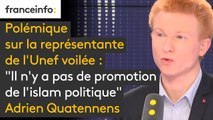 Polémique sur la représentante de l'Unef voilée : "Il n'y a pas de promotion de l'islam politique mais je suis assez gêné par ça, je ne suis pas favorable à ce que des responsables politiques ou syndicaux portent des insignes religieux" Adrien Quatennens