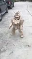 Il fabrique un costume de robot en carton pour son enfant et c'est une réussite