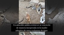 Un adorable golden retriever se convierte de manera inesperada en la madre adoptiva de unos cachorros de tigre
