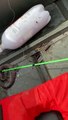 Footage of an aquatic cottonmouth snake chasing a group of people in a boat while they were out taking water samples.The video was filmed off the coast Virginia Beach in the US earlier this week.