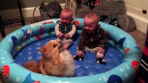 Twin Babies Can't Stop Giggling At Their Pomeranian Funny Video
