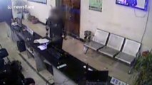 CCTV footage of a gamer at an internet cafe in China suffering from some severe gamer rage and smashing up the computer.