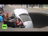 A shocking video has emerged from China, where a sinkhole swallowed four parked cars 3 meters into the ground. The hole was 5 meters wide, and also devoured a few trees. READ MORE: http://on.rt.com/7dgz