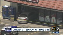 A driver has been cited by Mesa police for failing to control her vehicle after crashing into a 7-11 earlier this week.