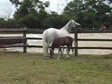 Iroise qui s'excite de voir tous les autres chevaux près du paddock, et du coup Ushuaia ne la lâche pas d'une semelle