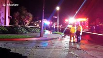 Firefighters reached the vehicle with a ladder and successfully freed the trapped occupants.