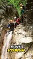 In the clip, which was captured in Shiyan, Hubei Province on August 7, the man can be seen swimming around his submerged vehicle to the amazement of onlookers.