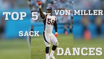 Broncos defensive end Von Miller sacks Matthew Stafford, but the play is called back on a David Bruton penalty.