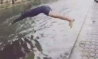 Dengan berenang, Ben hanya membutuhkan waktu 12 menit untuk tiba di lokasi kerjanya, sementara jika dengan kendaraan akan memakan waktu yang lebih panjang.