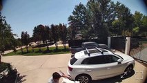 Un chien excité fait du parkour sur une voiture fermée