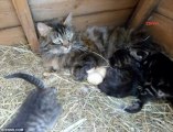Kedi ve Tavuk Nöbetleşe Kuluçkaya Yatıyor
