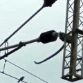 The mini tornado hovered over the statue of mystical Buddhist serpent 'Naga' in Bueng Khong Long, Thailand.