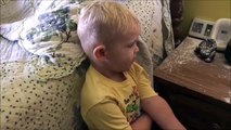 Un petit garçon a été laissé seul devant les dessins animés pendant que son papa se trouvait dans la cuisine. Il a fait une grosse bêtise dans la chambre ! Il n'a pas l'air de s'en vouloir !
