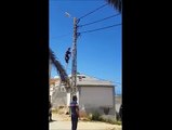 Sauvetage d'un chat en équilibre sur une ligne électrique... Risqué