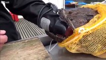 Göle girip dev yayın balığını koluyla yakalayan kadın hayrete düşürdü.