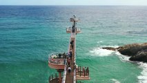바다로 한 걸음 더 나가갈수록 불어오는 바람은 더 시원해지고 마치 뻥 뚫린 듯한 투명한 바닥 아래로 거친 파도가 오가는 모습은 아찔하기까지 합니다.