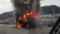 어제 오후 4시쯤 경부고속도로 상행선 신탄진요금소 인근에서 달리던 SUV 승용차에 불이 붙었습니다.
