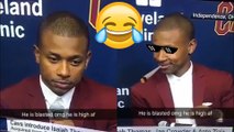 The Cleveland Cavaliers just introduced Isaiah Thomas and Jae Crowder at a press conference Thursday afternoon. Twitter lit up during the press conference and according to a lot of fans, so did Isaiah Thomas! Do you think he smoked a little sumn-sumn before the presser?