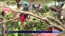L'ouragan Maria a fait deux morts et deux disparus en Guadeloupe. Au lendemain du passage de la tempête, les pompiers s'affairent pour dégager les principaux axes de communication. (AFP)