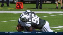 Atlanta Falcons defensive end Adrian Clayborn sacks Detroit Lions quarterback Matthew Stafford for an 8-yard loss.