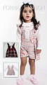 BABY GIRL TARTAN ROMPER DRESS WITH LACE PLACKET AND 2 SATIN BOWS - BABY PINK