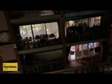 Una multitud de gent aplaudeix un desena de tractors en passar davant d'un col·legi electoral a Mataró amb crits de 'votarem'.