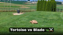 This is the hilarious moment a bossy pet tortoise chases away two bulldogs.