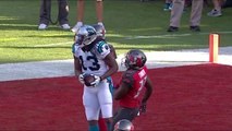 Carolina Panthers quarterback Cam Newton hits wide receiver Kelvin Benjamin in stride for a 31-yard touchdown.
