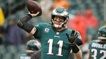 Philadelphia Eagles quarterback Carson Wentz throws a strike to wide receiver Nelson Agholor for 17 yards.