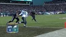 Baltimore Ravens quarterback Joe Flacco trips, gets up, and throws a completion to Jeremy Maclin while being tackled.