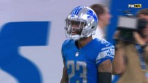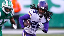 Seattle Seahawks defensive tackle Sheldon Richardson makes interception after ball tips off Los Angeles Rams running back Todd Gurley's hand.