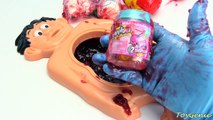 Cutting Open Mr Doh Dirt Belly with Crazy Guy Worm Skull and Squishy Toys: \r